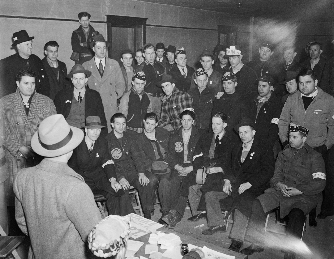 A meeting of Local 600 of the United Auto Workers, on strike at the River Rouge Ford plant, April 4, 1941. (Bettmann / Getty Images)