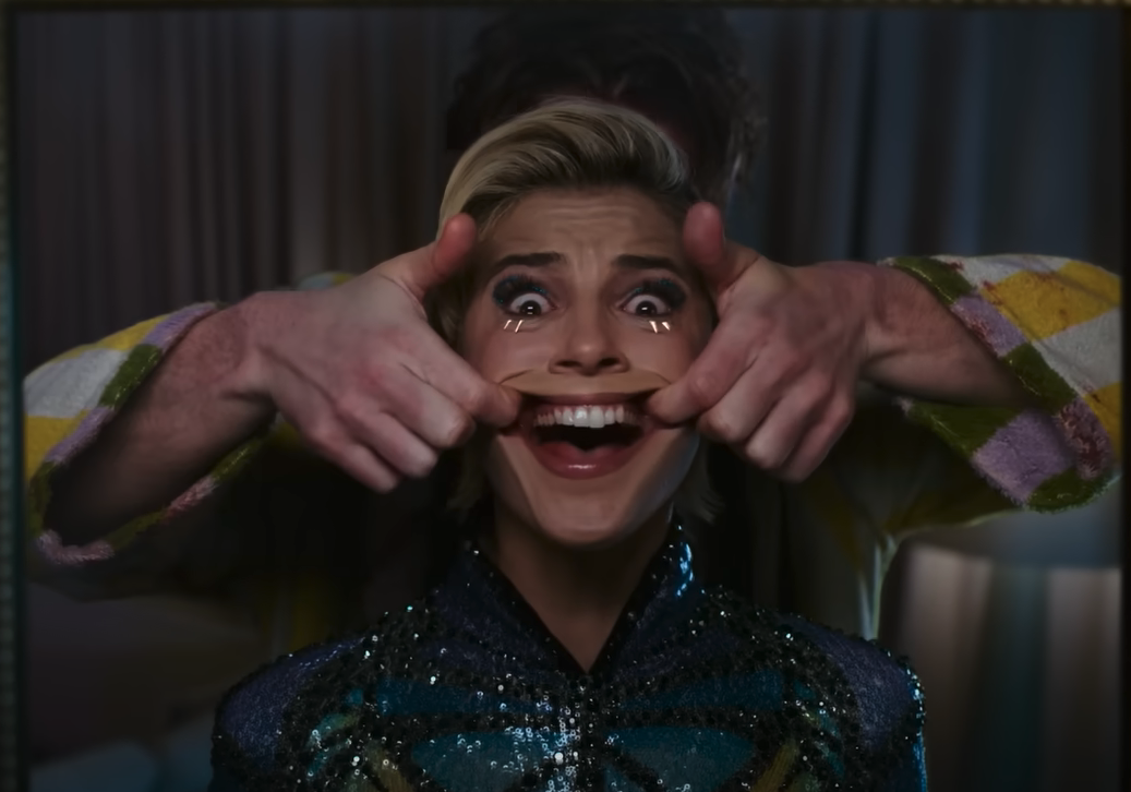 Under these conditions, Skye, like everyone afflicted with the smile, pursues the only path of liberation that seems to be available: brutal self-harm. Skye already copes with the pressure of her role by pulling out chunks of her hair. For as much as she feels herself in her music and dancing, she longs to be rid of this self that, properly speaking, belongs to investors. Exposure to the smile monster exacerbates this morbid urge tenfold.