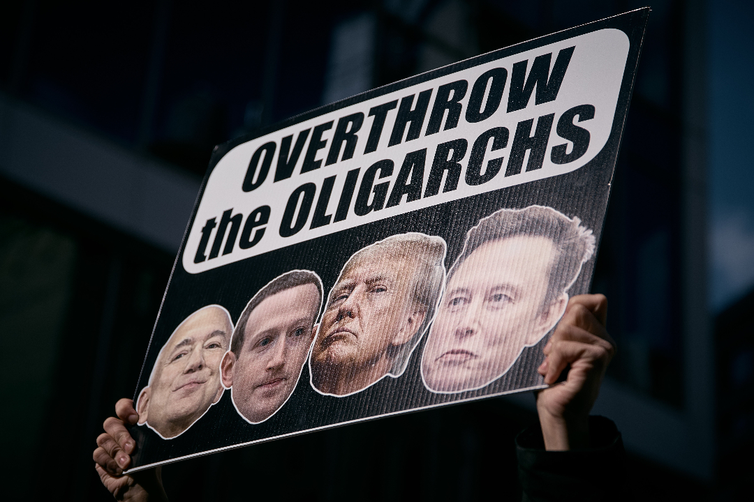 A protester carries a sign during a protest against President Donald Trump in Washington Square Park on February 17, 2025, in New York City. (Andres Kudacki / Getty Images)