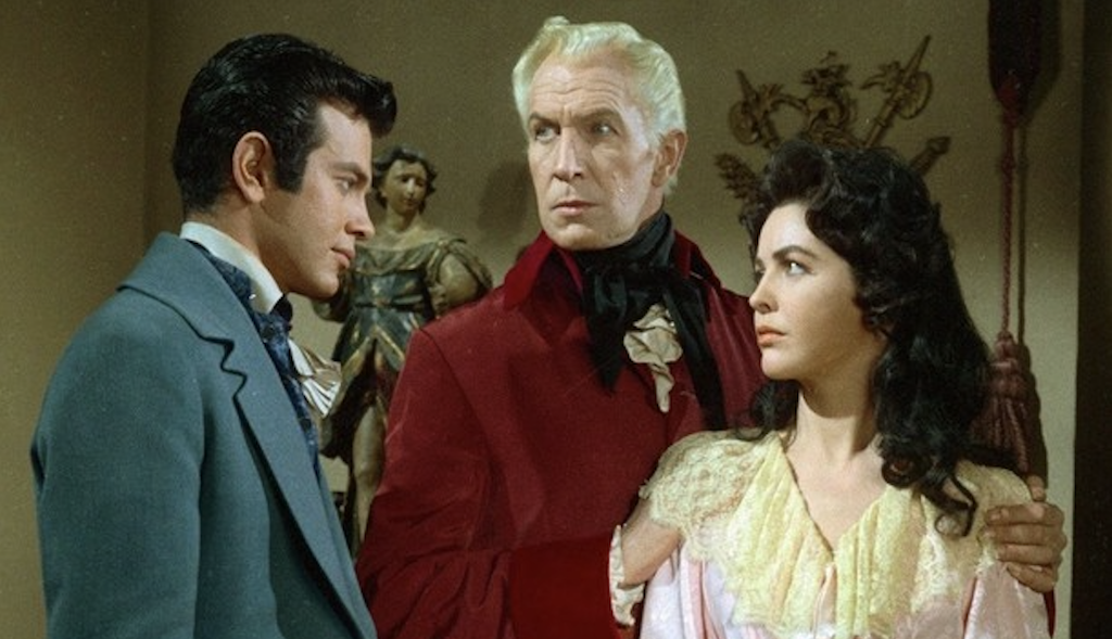 But Bava himself had been inspired by the rise of England’s luridly violent but elegantly shot Hammer Horror films of the late 1950s. These movies shocked audiences around the world with their reconceived versions of gothic classics like Dracula, Frankenstein, and The Mummy that had once been the province of Universal Studios in Hollywood. Hammer’s The Curse of Frankenstein (1957), directed by Terence Fisher and starring Peter Cushing and Christopher Lee, was such a popular smash it was quickly followed by sensational remakes of Dracula and The Mummy with the same team of director plus lead actors, all in thrilling color with plenty of charged sexuality and lurid gore. The 1960 Dracula sequel, Fisher’s The Brides of Dracula, premiering on July 7, is a less remarkable or historically significant film on its own, but it continued the recent Hammer string of influential moneymakers, featuring Cushing reprising his role as Van Helsing, but doing without Lee as Dracula because the actor feared typecasting.