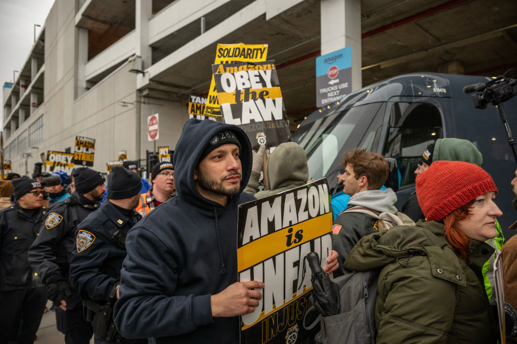 Many organizing victories of the last few years — including landmark wins at Amazon, Starbucks, REI, and Trader Joe’s — have yet to yield first contracts, as employers refuse to bargain and some go so far as to challenge the legitimacy of the NLRB. (Victor J. Blue / Bloomberg via Getty Images