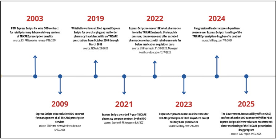 Nearly five years later, Express Scripts won another contract to manage all TRICARE prescription services, including specialty medications for complex medical conditions. Then, in 2021, they received a multiyear, $4.3 billion contract with the Department of Defense.
