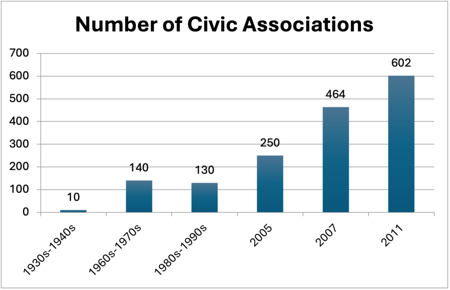 Torres’s City Hall led a major effort to organize and mobilize residents, spearheaded by the Office of Citizenship Participation. The success of this effort was aided by the movement trajectories of key state officials who joined the administration after years and often decades of social movement leadership and organizing. Lalo Paez, who like the mayor and many other top officials was a former social movement leader, headed the participation office, which was located in the recently municipalized fairgrounds. Lalo and his team first organized communal boards and later organized and registered communal councils and communes. This facilitated a boom in civic associationalism, as shown in Figure 1, and was a boon to popular power in Torres.
