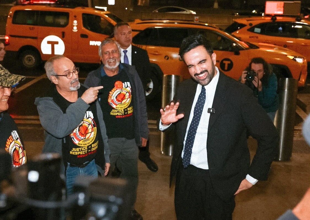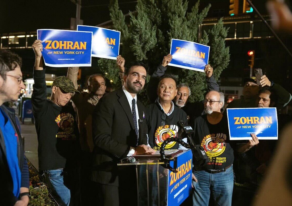 Zohran Mamdani with taxi drivers on October 30. (Zohran for NYC)