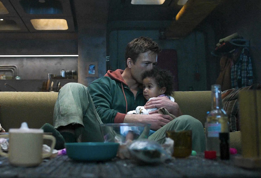 But soon Ben is on his way again, meeting more fake people. Like Amelia (Emilia Jones of CODA), a privileged young woman he takes hostage because he needs her car to make another fast getaway. She’s supposed to be the “nice liberal” who blindly clings to the idea that those in authority are just enforcing law and order. She believes the network propaganda about those on the run as dangerous underclass malefactors. Of course, she’s quickly converted by Ben’s manly virtues. It’s not Jones’s fault that she can’t bring it off with any credibility. It’s a feature, not a glitch, of this too-slick film that nothing reminds you too much of reality.