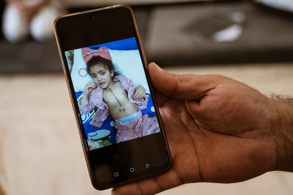 Rahma, now nine, sits nearby, offering shy smiles — too young to understand the gravity of her medical conditions. “She’s still a child,” Fayadh says. “She wants to play with the other children, but we can’t allow it. Her heart is too weak. She misses a lot of school because her health is too fragile.”