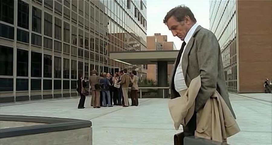 The action takes place in disproportionate settings (somewhat like in German expressionist cinema), magnified by telephoto lenses combined with a wide angle. Whether it is the barracks that have devastated the suburbs of Agrigento, the half-empty corridors and staircases of the Archaeological Museum of Naples, or the headquarters of the PCI, it is clearly an unlivable world, where no one feels at ease. A true waking nightmare: exactly what Sciascia’s book, with its eighteenth-century lightness, does not even come close to being.