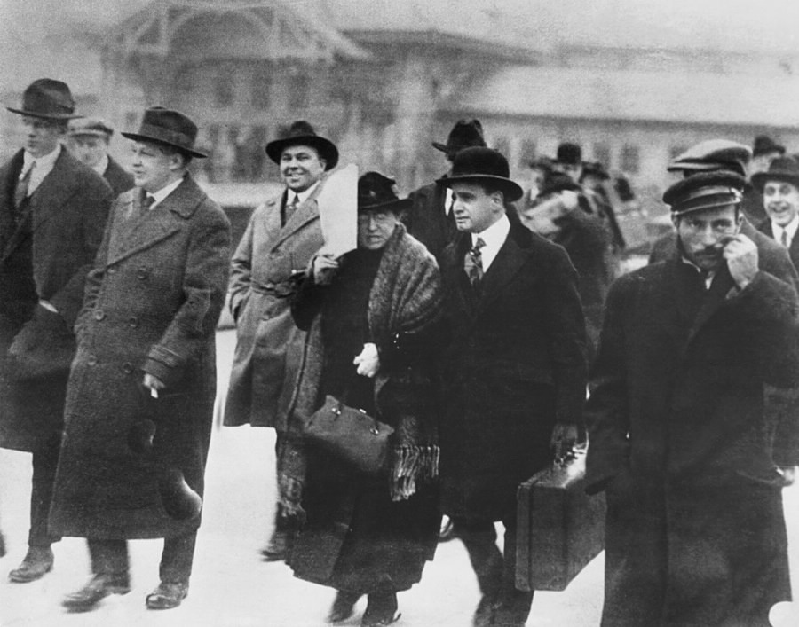 Federal officials like Attorney General Mitchell Palmer and the young head of the DOJ’s General Intelligence Division, J. Edgar Hoover, were eager to oblige. The notorious Palmer Raids that Hoover spearheaded in the winter of 1919–20 — intentionally launched on the second anniversary of the Bolshevik Revolution — rounded up ten thousand alleged alien radicals for deportation, though most of the dangerous “radicals” were no such thing and had simply been in the wrong place at the wrong time.