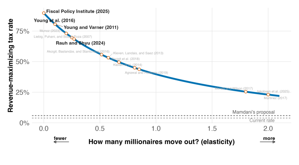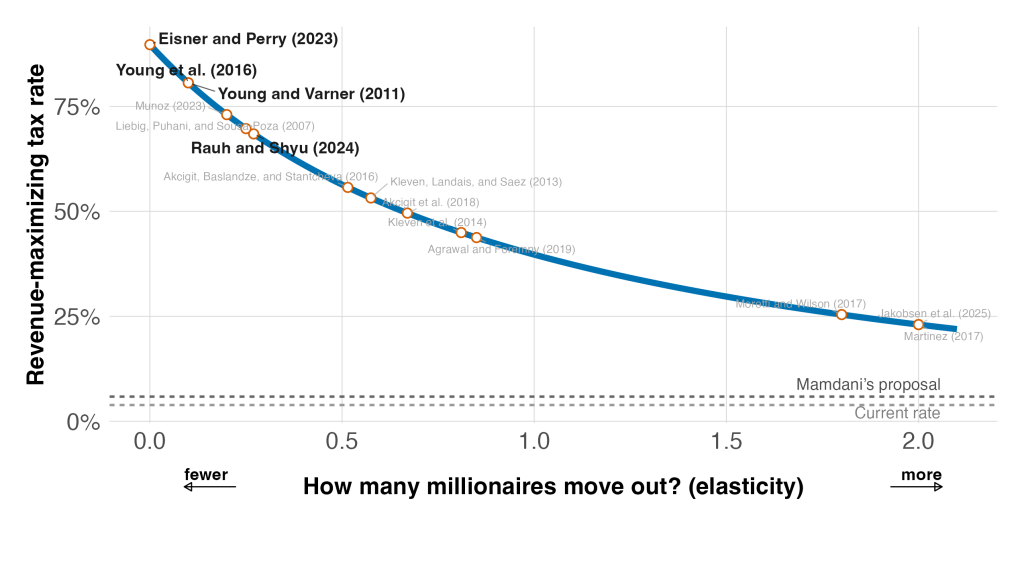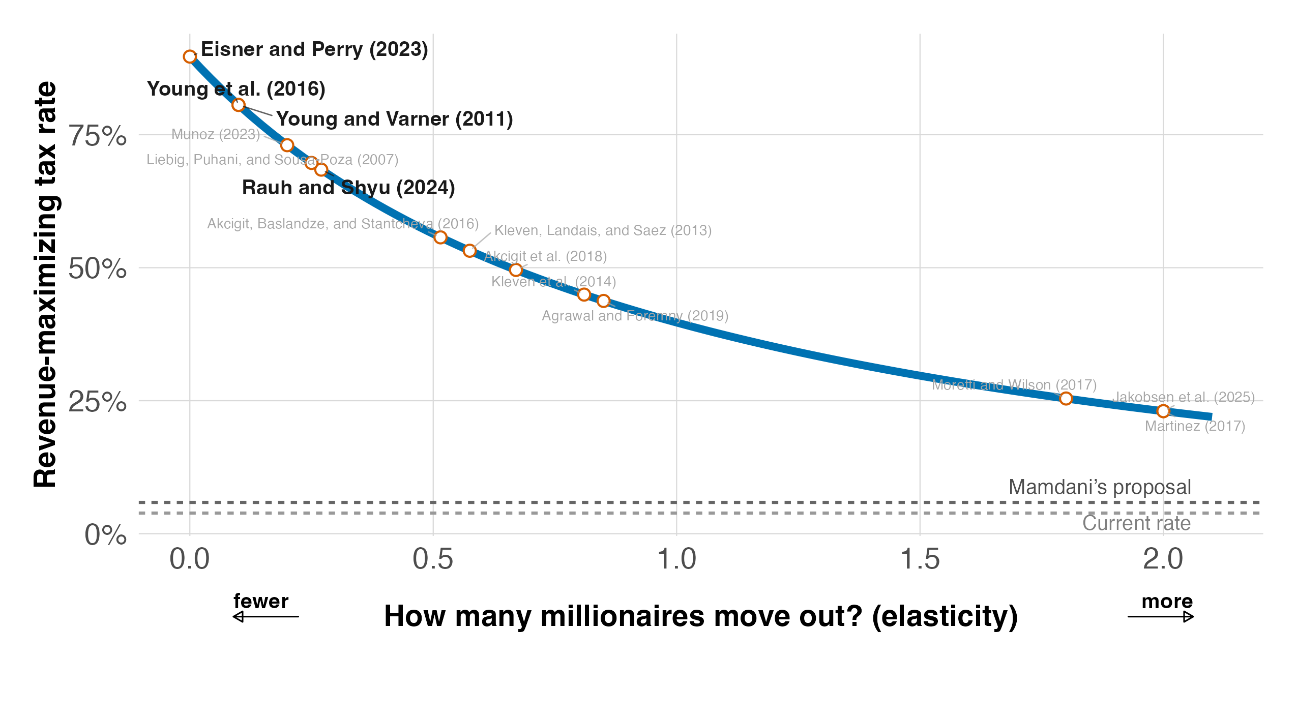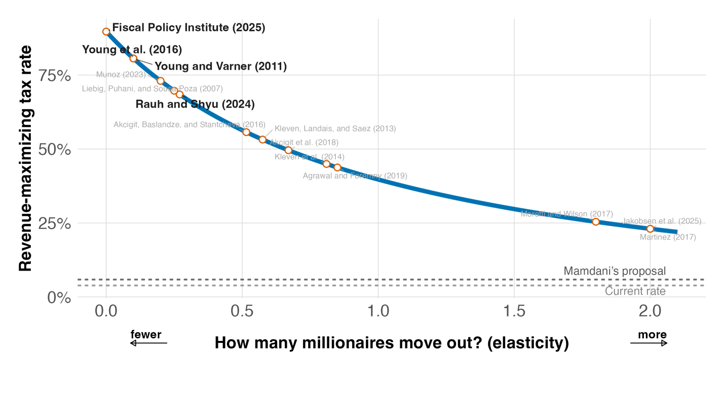 The academic literature is clear: out-migration can hurt revenue, but current levels of taxation are not high enough for migration to fully counteract the increase in revenue from higher taxes. From a purely revenue perspective, the Mamdani proposal appears rather safe.