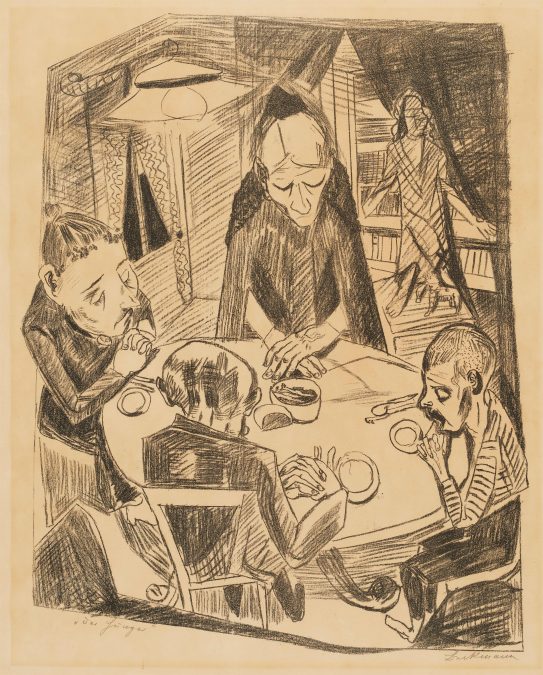 Born into a middle-class family in Leipzig in 1894, Beckmann had a typical bourgeois upbringing until age ten, when his father died. After art school in Weimar and a spell in Paris, he established his practice in Berlin. Here, he found early success under the influence of the Berlin Secessionists, who rebelled against the restrictions on artistic production imposed by Kaiser Wilhelm II. It should have served as an early warning that there is no such thing as the apolitical artist. As well as large theatrical scenes, he honed his skills as a draftsman. Though his prints are renowned for their pioneering and experimental compositions, Beckmann was not a formal innovator. He used the traditional mediums pioneered in Germany in earlier centuries: drypoint etchings, lithographs, and a small number of woodcuts.
