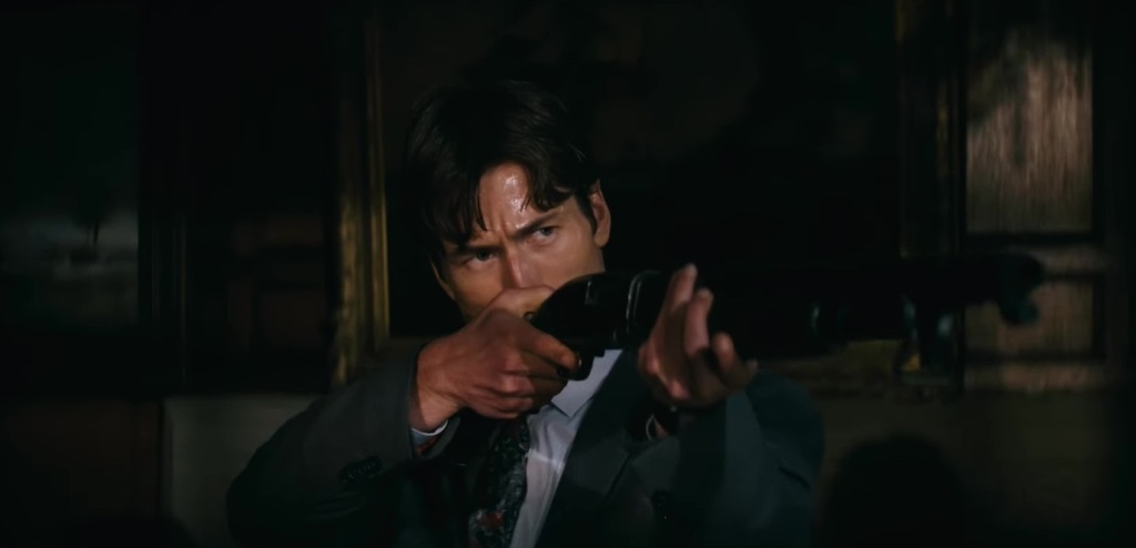 Dropping the satire when dealing with this romance makes these scenes even tamer than the general, dampening tameness of the movie overall. And the other woman in Becket’s life never has any significant hold on him in the early scenes. That’s Becket’s childhood friend Julia Steinway (Margaret Qualley), who keeps turning up in his adult life to offer a jolt of seductiveness while indicating in cryptic ways that she knows about his homicidal spree. It’s obvious from early on that her long con is going to be smarter than his, but since he’s kept his distance from her throughout, there’s no big jolt when this development manifests itself.
