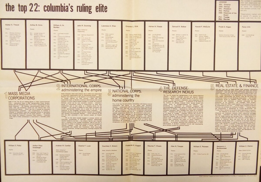 I feel like “Who Rules Columbia?” really showed a way of looking at the university as a power structure that was interlocked with a wider network of corporate power. Can you talk more about what you were trying to accomplish with it?