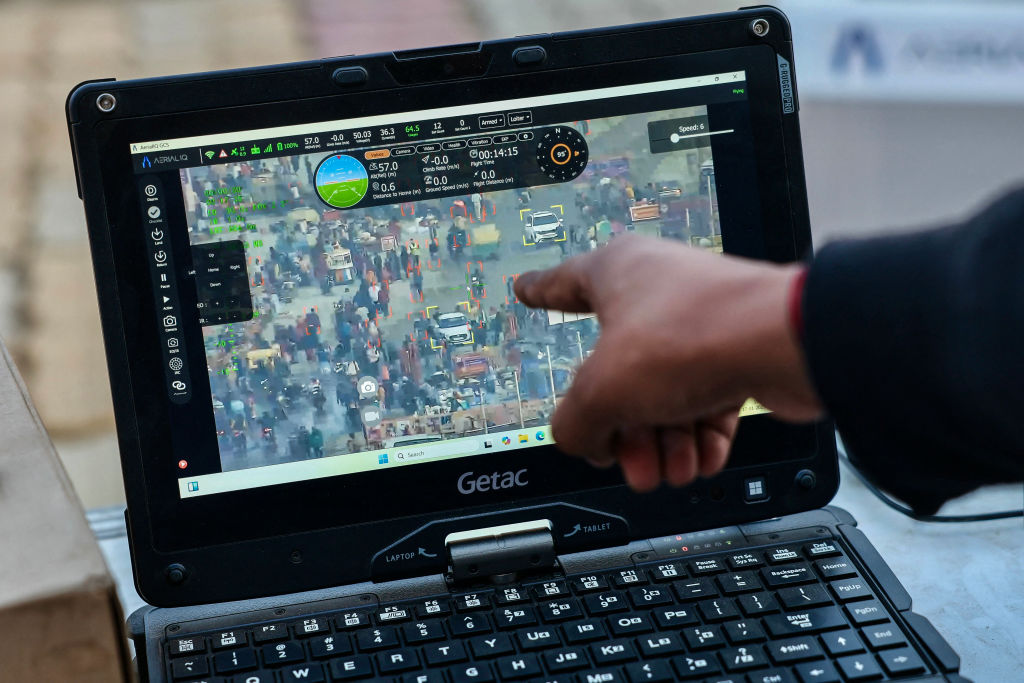 Surveillance via a drone equipped with artificial intelligence. (Niharika Kulkarni / AFP via Getty Images)