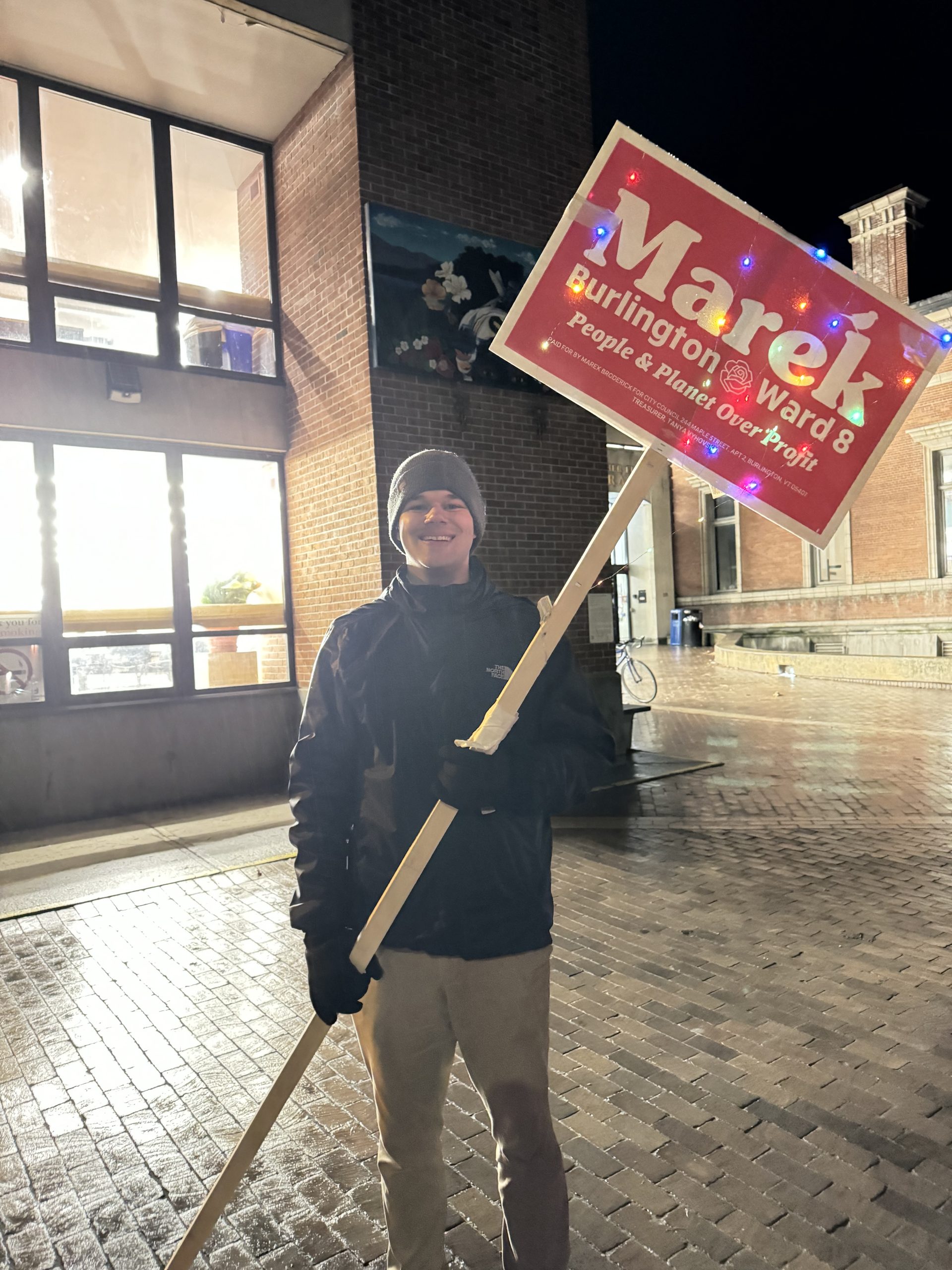 It’s been nearly two years since Marek Broderick, then a soft-spoken junior at the University of Vermont (UVM), was first elected to the Burlington City Council as member of the Vermont Progressive Party. Now he is preparing to graduate with a degree in biology while running for reelection tomorrow.