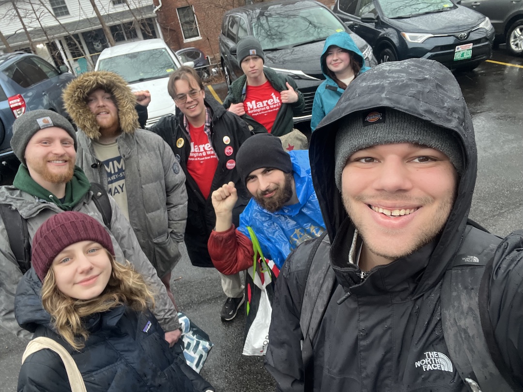 Broderick, for his part, emphasized that while his first campaign was primarily focused on policy and delivering material change, seemingly more abstract matters of political principle played an important part in establishing his credibility and differentiating himself from his opponent. Aside from a few speeches and speaking at public comment, he said he had “zero name recognition, either on campus or in the rest of Burlington.” In attempting to close the recognition gap, Broderick’s and DSA’s particular style of politics shone through. In contrast to the last DSA campaign in the ward, which focused only on the campus-voting bloc, Broderick and his core volunteers made it a point to spread their messaging and campaigning evenly across the demographics. While making it no secret that he was a student and spoke from a student perspective, Broderick ran on what he called “a winning platform” focused on appealing across the working class: advocating for the interests of low-wage workers, affordable rents, investments in sustainability, and robust public transit.