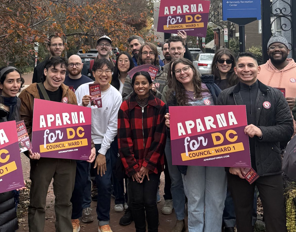 Aparna Raj announced her candidacy for Ward 1 DC Council last summer. A renter and a democratic socialist, her platform prioritizes rent control and affordable housing, universal childcare, and local autonomy. She has been endorsed by unions including local chapters of UNITE HERE, the Service Employees International Union (SEIU), and the Communications Workers of America Union (CWA) as well as the American Federation of Labor and Congress of Industrial Organizations (AFL-CIO). Her history of organizing for tenants rights, food justice, and labor is embedded in her campaign. She is also endorsed by the Metro DC chapter of Democratic Socialists of America (DSA).