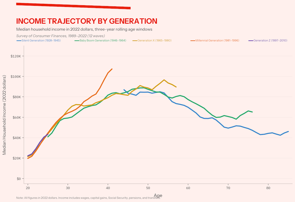 Given that conservatives and centrist Democrats won’t stop pushing phony claims of generational inequity to distract from the real issues of economic inequality, it’s crucial for younger Americans to remember that the middle-income millennial household making $86,000 has more in common with the median boomer retiree making $60,000 including Social Security than with Mark Zuckerberg.