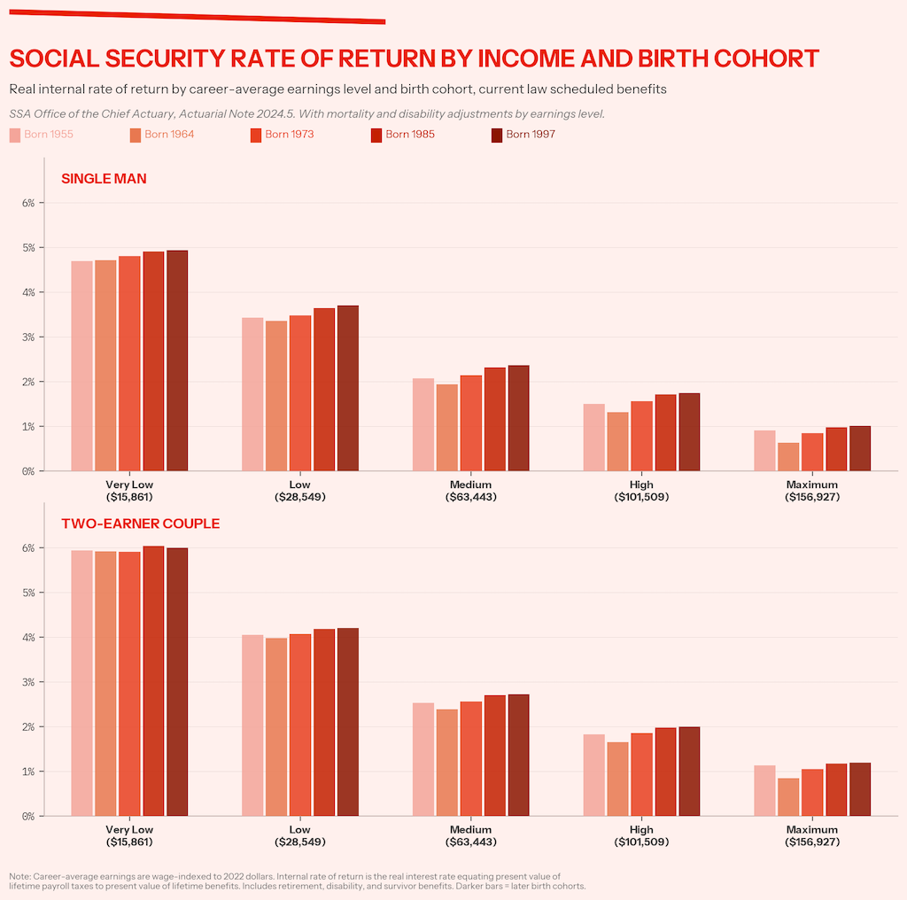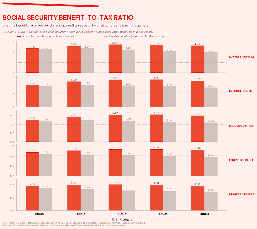The great irony of demonizing boomers as the source of Social Security’s shortfall is that scholars have long known that the real beneficiaries of intergenerational inequity in the program were the Lost Generation and Greatest Generation. Americans who retired in Social Security’s first few decades received far more in benefits than they had contributed, a windfall that consumed not only the reserves that would have accumulated but also decades of compound interest on those reserves. The Silent Generation, boomers, and every cohort that followed have been paying for that gift.