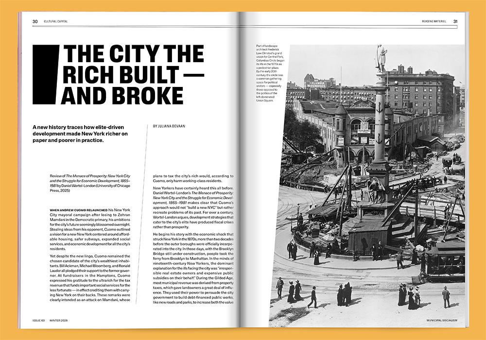“Amid the economic depression of the 1870s, New Yorkers came to feel that residents who contributed to the local economy, not real estate firms, were the real engines of prosperity.”